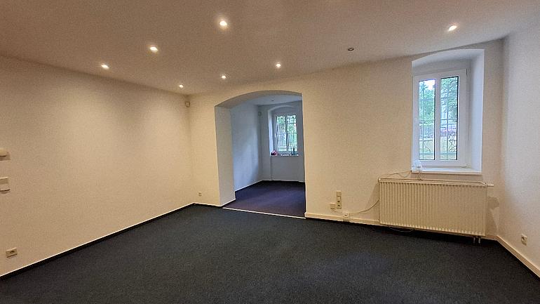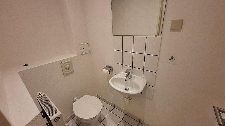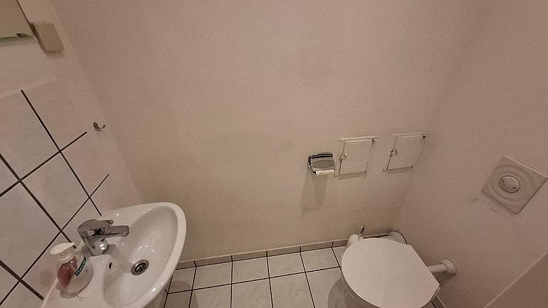 Die Einheit verfügt über zwei separate WC-Anlagen, die den Komfort für Mitarbeiter und Besucher erhöhen. Große Fenster sorgen für viel Tageslicht und schaffen eine angenehme Arbeitsatmosphäre.