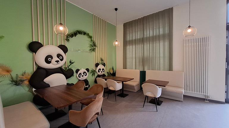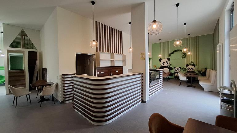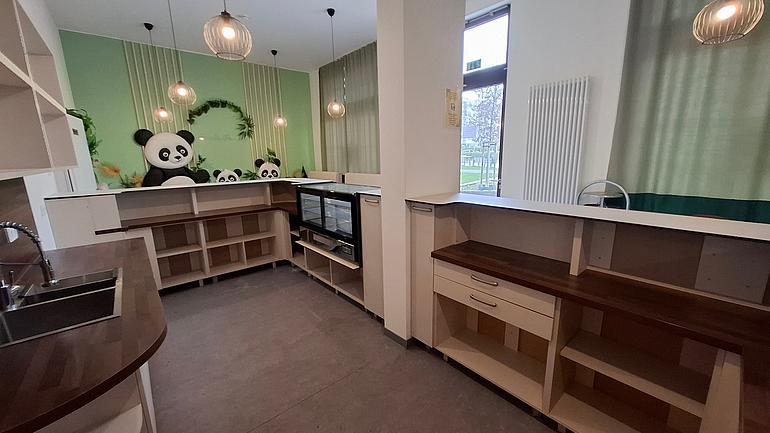 Zuletzt wurde die Fläche als Kindercafé („Panda-Café“) genutzt, wodurch bereits eine umfangreiche Ausstattung vorhanden ist. Dazu zählen unter anderem Tische und Stühle, eine Bar, eine voll ausgestattete Küche sowie ein kleiner Indoor-Spielbereich mit Rutsche. Der Vermieter wünscht sich idealerweise die Übernahme dieser Einrichtung durch den neuen Mieter, wobei das bestehende Nutzungskonzept nicht zwingend fortgeführt werden muss.