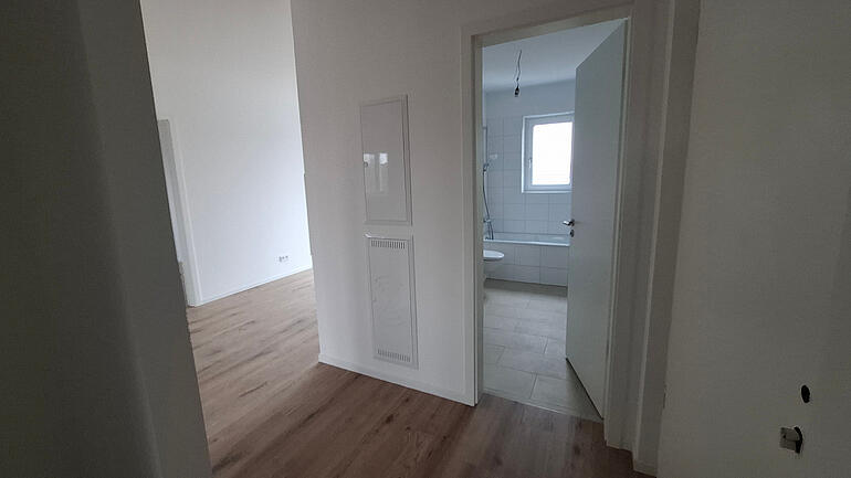Diese lichtdurchflutete Wohnung in der 4. Etage (ohne Aufzug) ist ein Erstbezug nach einer gelungenen Aufstockung. Die Loggia lädt zum Entspannen und Genießen der Aussicht ein. Die offene Küche integriert sich harmonisch in den Wohnbereich und schafft ein modernes Ambiente. Die gefliesten Bäder mit Fenster bieten zusätzlichen Komfort und Tageslicht. Alle Zimmer sind praktisch vom Flur aus begehbar, was für eine optimale Raumnutzung sorgt.