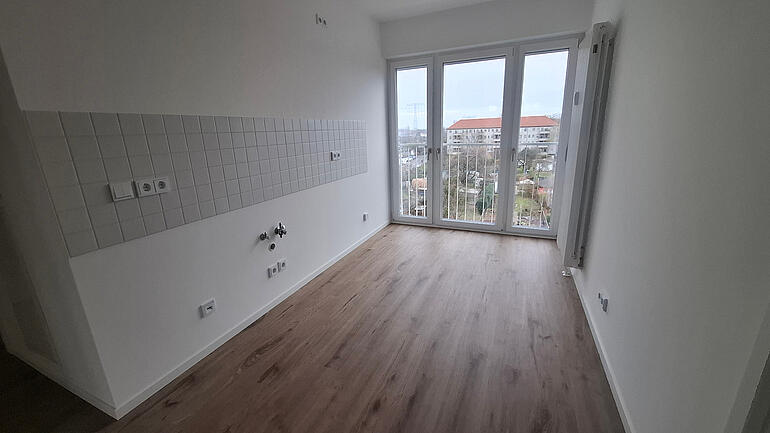 Diese lichtdurchflutete Wohnung in der 4. Etage (ohne Aufzug) ist ein Erstbezug nach einer gelungenen Aufstockung. Die Loggia lädt zum Entspannen und Genießen der Aussicht ein. Die offene Küche integriert sich harmonisch in den Wohnbereich und schafft ein modernes Ambiente. Die gefliesten Bäder mit Fenster bieten zusätzlichen Komfort und Tageslicht. Alle Zimmer sind praktisch vom Flur aus begehbar, was für eine optimale Raumnutzung sorgt.
