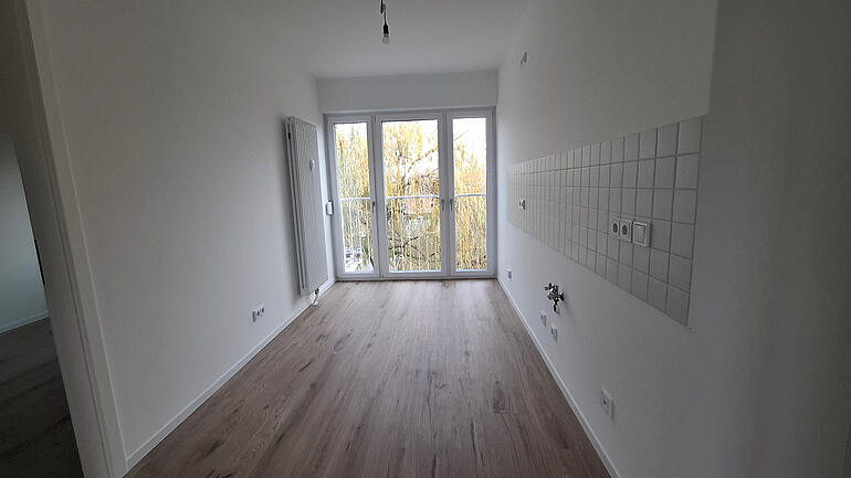 Diese lichtdurchflutete Wohnung in der 4. Etage (ohne Aufzug) ist ein Erstbezug nach einer gelungenen Aufstockung. Die Loggia lädt zum Entspannen und Genießen der Aussicht ein. Die offene Küche integriert sich harmonisch in den Wohnbereich und schafft ein modernes Ambiente. Die gefliesten Bäder mit Fenster bieten zusätzlichen Komfort und Tageslicht. Alle Zimmer sind praktisch vom Flur aus begehbar, was für eine optimale Raumnutzung sorgt.