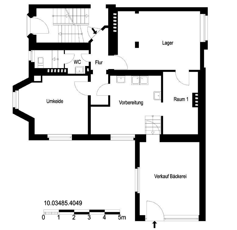 Die Fläche verteilt sich auf insgesamt vier Gewerberäume sowie ein separates WC. Durch die Aufteilung über zwei Ebenen lassen sich Verkaufs-, Arbeits- und Lagerbereiche sinnvoll voneinander trennen.
