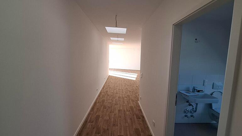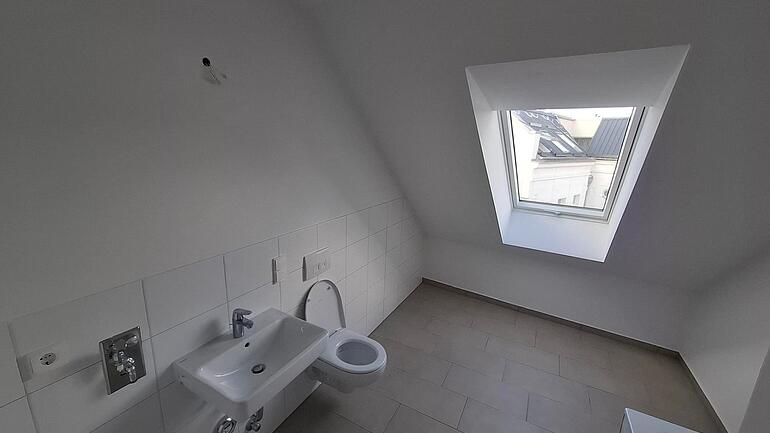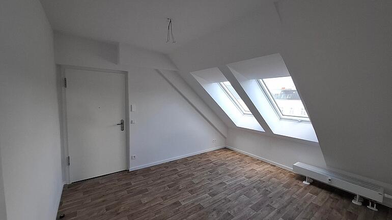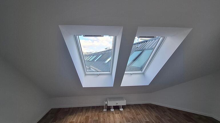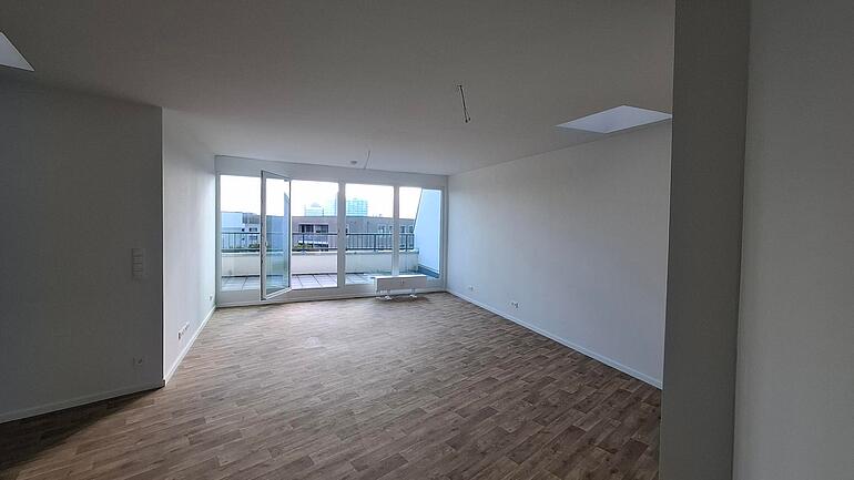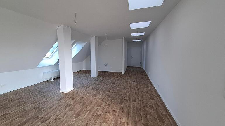 Die Wohnung befindet sich im Dachgeschoss und bietet eine großzügige Wohnfläche von 102,83 m². Sie verfügt über zwei Schlafzimmer, ein Wohnzimmer mit offener Küche und einem Balkon. Zudem gibt es eine Badezimmer mit Badewanne.