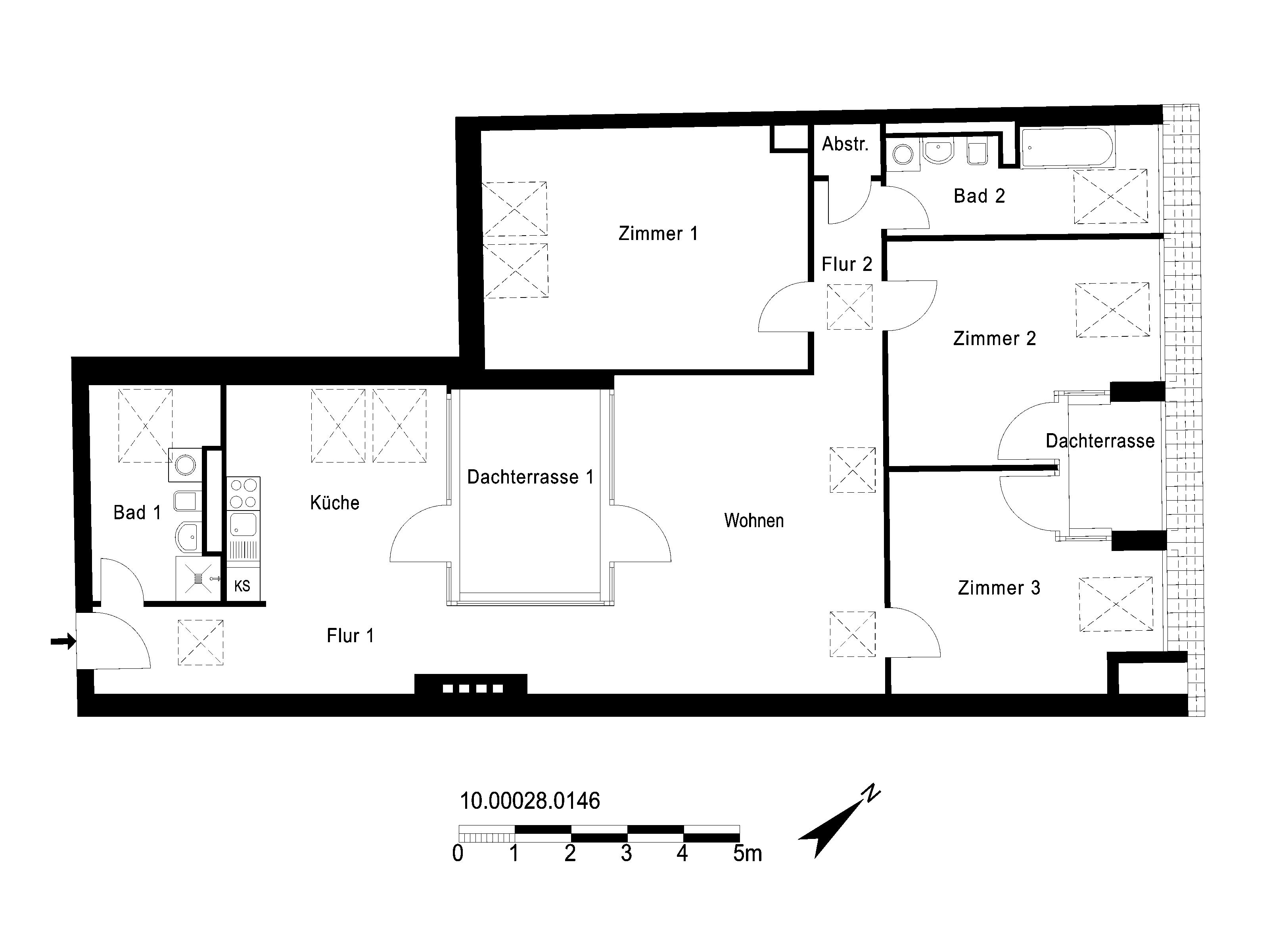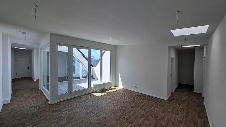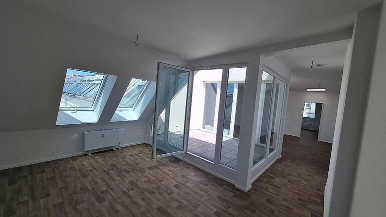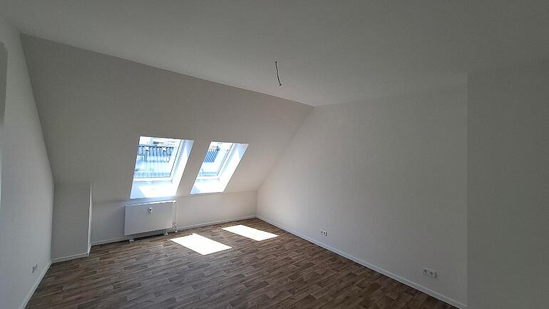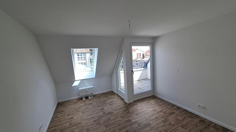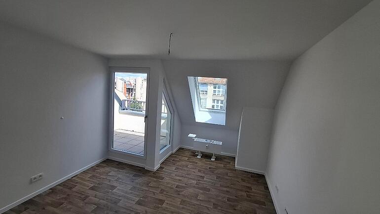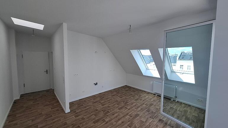 Die Wohnung befindet sich im Dachgeschoss und bietet eine großzügige Wohnfläche von 125,25 m². Sie verfügt über drei Schlafzimmer, ein Wohnzimmer mit offener Küche, zwei Balkonen. Zudem gibt es zwei Bäder, eines mit Wanne und eines mit Dusche.