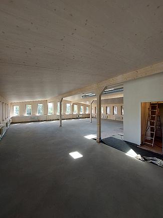 Es handelt sich hierbei um ein neu errichtetes Gebäude, welches in Erdgeschoss mit Hallenflächen und im Obergeschoss mit Büroflächen errichtet wird. Die Lage im alten Dorfkern von Hellersdorf versprüht mit seinen zahlreichen denkmalgeschützten Objekten einen ländlichen und ruhigen Dorfcharakter, wie man ihn in Hellersdorf nicht erwarten würde. Der vorgelagerte Gutsplatz mit seinem Wasserspielen und Sitzmöglichkeiten lädt zum Verweilen und kleinen Pausen ein.