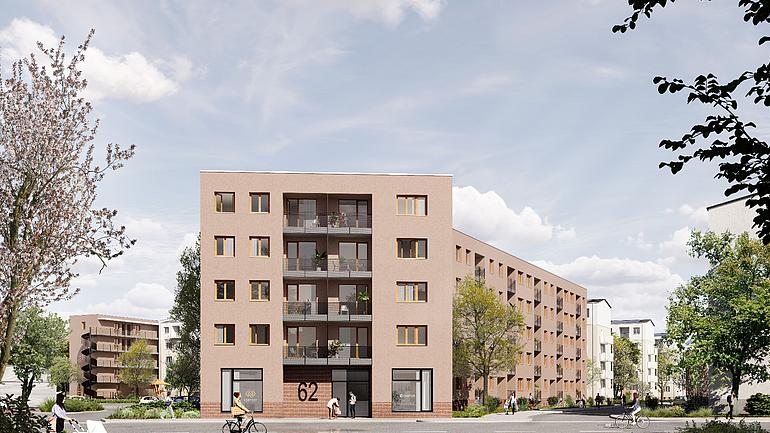 Das neu errichtete Wohngebäude befindet sich in unmittelbarer Nähe zum Hamburger Platz. Derzeit werden hier ca. 80 Wohneinheiten und 6 Gewerbeeinheiten errichtet.
