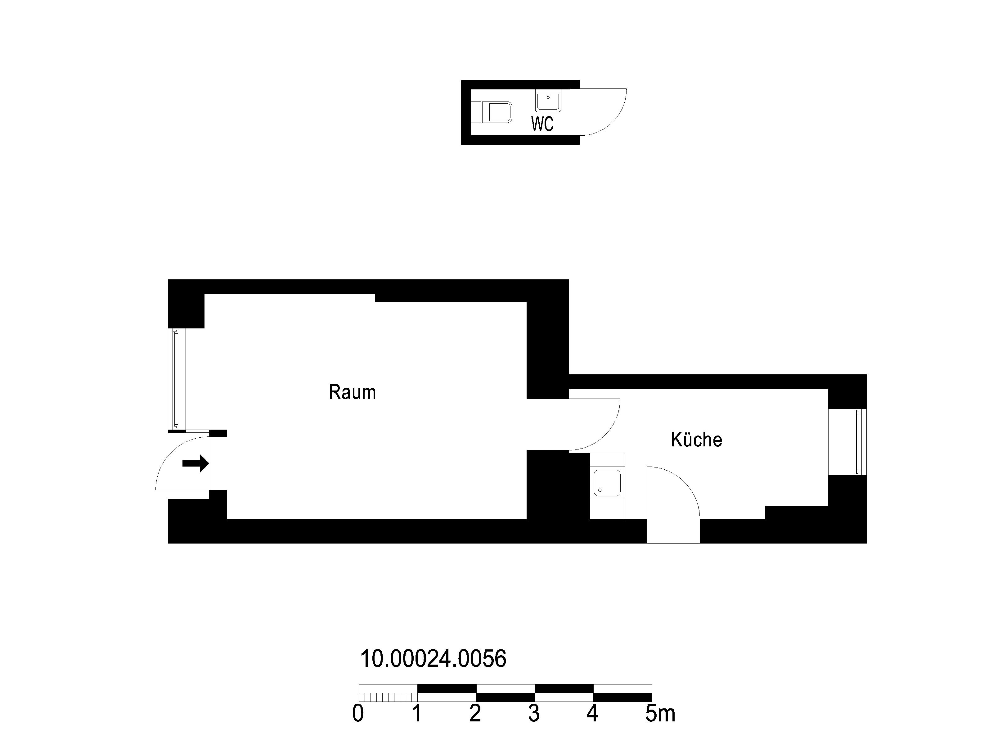 Das WC befindet sich außerhalb der Einheit und ist über den Hof erreichbar. Die Fläche wird unbeheizt vermietet.