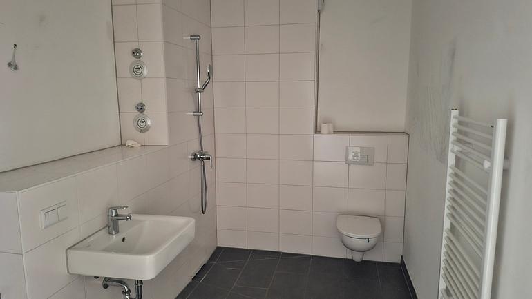 Diese moderne Wohnung mit offener Wohnküche steht ab sofort zur Vermietung. Freuen Sie sich auf eine platzsparende Fußbodenheizung sowie eine leicht zugängliche ebenerdige Dusche. Der PVC-Belag in Holzoptik trägt zu einem warmen Wohnklima dazu. Gerne kann ein Besichtigungstermin vereinbart werden.