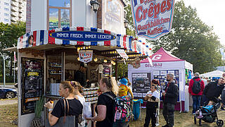An 37 Ständen konnten sich die Besucher*innen über Vereine oder Initiativen im Bezirk informieren und verschiedene Mitmachangebote, wie zum Beispiel Bastelaktionen oder Kinderschminken wahrnehmen. Weitere Highlights, besonders für die kleinen Gäste, waren der Kinderzirkus Cabuwazi, die Riesenrutsche, eine Kletterwand sowie Hüpfburg und Spielmobil. Die Berliner Wasserbetriebe versorgten am eigenen Wassermobil Besucher*innen zudem mit allerlei Infos zum Umgang mit der Ressource Wasser und schenkten Trinkwasser aus. Der Tiefkühlpizzahersteller Freiberger mit Sitz im Märkischen Viertel war mit eigenem Ofen vor Ort. Der gesamte Umsatz der verkauften Pizza wird an Initiativen im Märkischen Viertel gespendet.