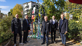 Foto (v.l.n.r.): Jörg Franzen, Vorstandsvorsitzender der GESOBAU AG, Christian Gaebler, Senator für Stadtentwicklung, Bauen und Wohnen, Ephraim Gothe, Bezirksstadtrat für Stadtentwicklung in Berlin-Mitte, Martin Froh, Projektplaner von Winking Froh Architekten GmbH.